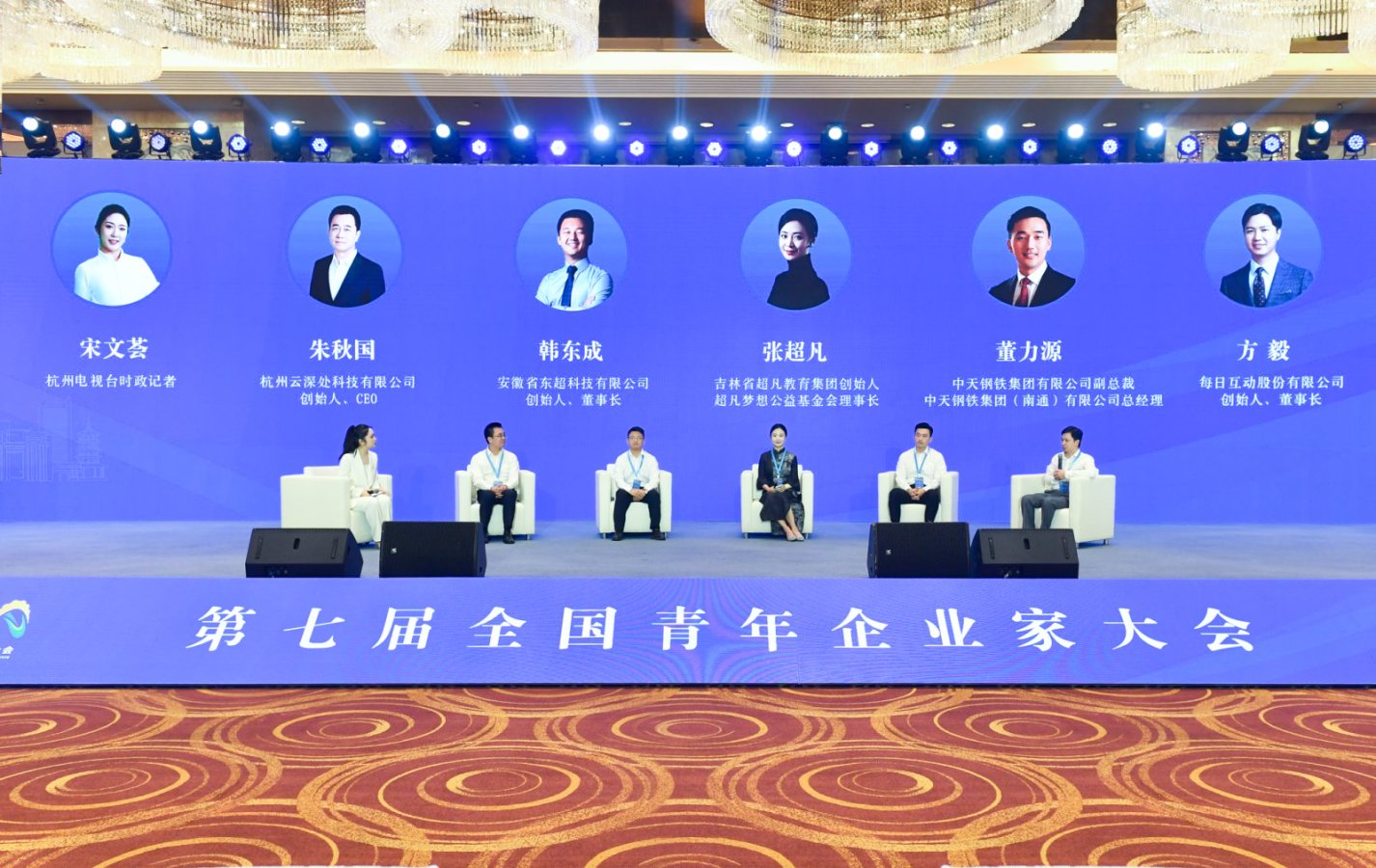 面对各种机遇与挑战,新时代、新征程,青年企业家应该以何种姿态奔向未来?在第七届全国青年企业家大会上,来自杭州电视台的95后时政记者宋文荟,与云深处科技有限公司创始人、CEO朱秋国,东超科技有限公司创始人、董事长韩东成,超凡教育集团创始人、超凡梦想公益基金会理事长张超凡,中天钢铁集团有限公司副总裁、中天钢铁集团(南通)有限公司总经理董力源,每日互动股份有限公司创始人、董事长方毅5位青年企业家一起共话未来。